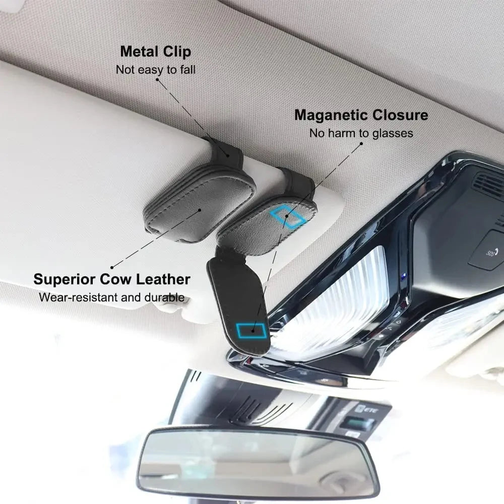 1. Durable Leather: The automobile glasses clip is made of first-class cowhide. The magnetic flip cover and metal clip are firm and stable, and will not damage the roof and scratch the temples of the glasses.
